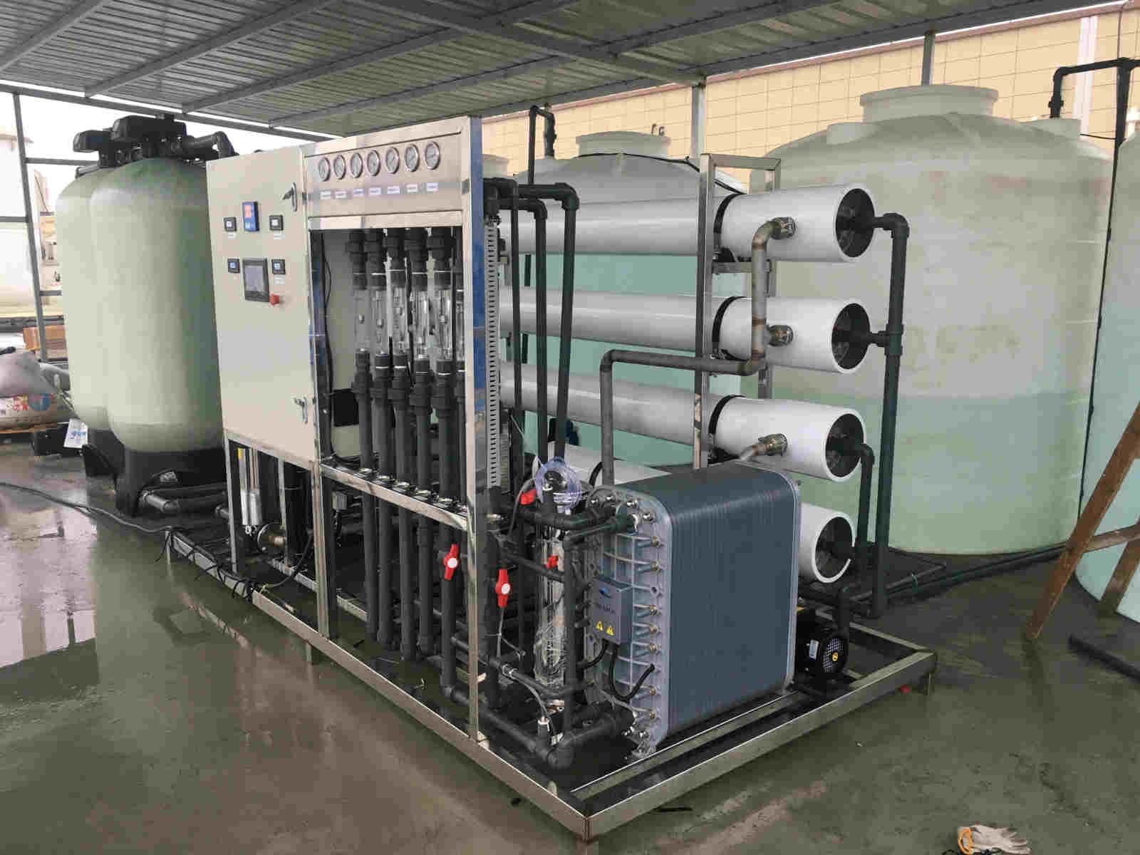 苏州EDI纯水处理设备工艺流程为:原水箱---原水泵---多介质过滤器---活性炭过滤器---保安过滤器---一级增压泵---一级反渗透----中间水箱---二级增压泵---二级反渗透---纯水箱---EDI泵---保安过滤器---EDI装置---用水点